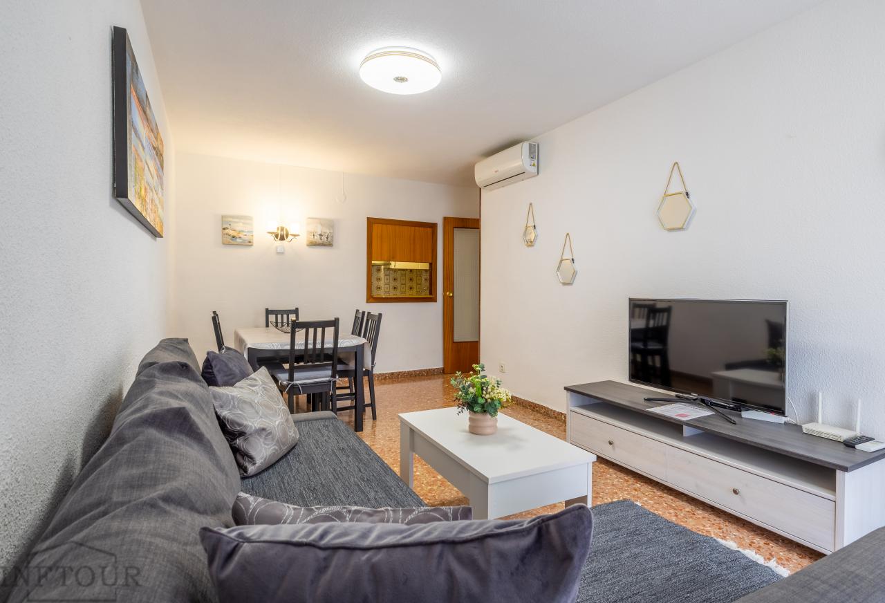 Vive unas vacaciones inolvidables en nuestro amplio apartamento de un dormitorio, perfectamente diseñado para alojar hasta 4 personas. Ubicado a pocos pasos de la playa del Arenal y del animado paseo marítimo, este apartamento es ideal para disfrutar de la vida costera, rodeado de restaurantes, bares y tiendas. El luminoso salón cuenta con un cómodo sofá cama, TV de pantalla plana, aire acondicionado y un encantador balcón acristalado con mueb...